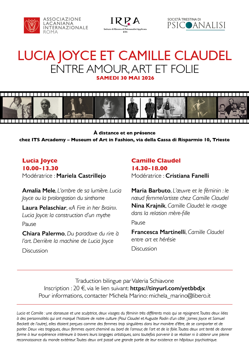 ALI-Rome, IRPA, Società triestina di psicoanalisi – Lucia Joyce et Camille Claudel : Entre amour, art et folie
