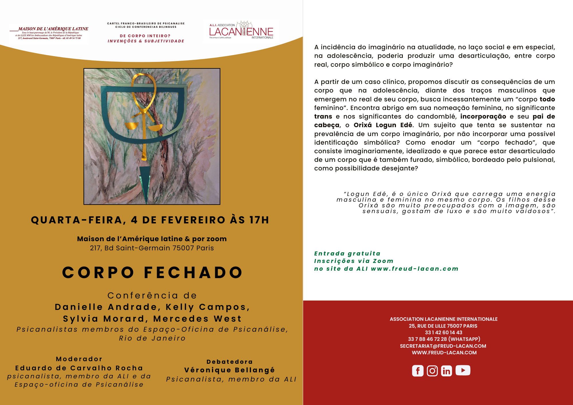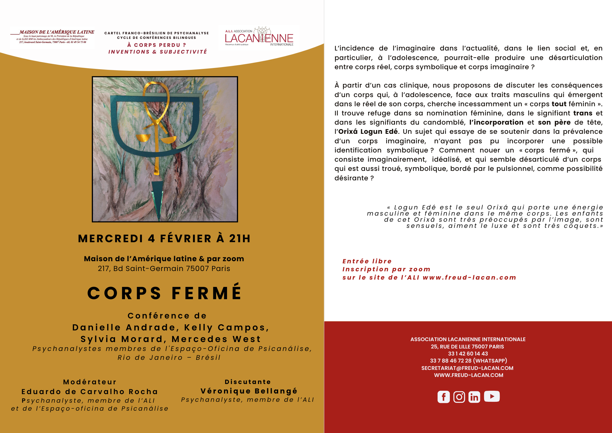 Conférence de Danielle Andrade, Kelly Campos, Sylvia Morard, Mercedes West : Corps fermé