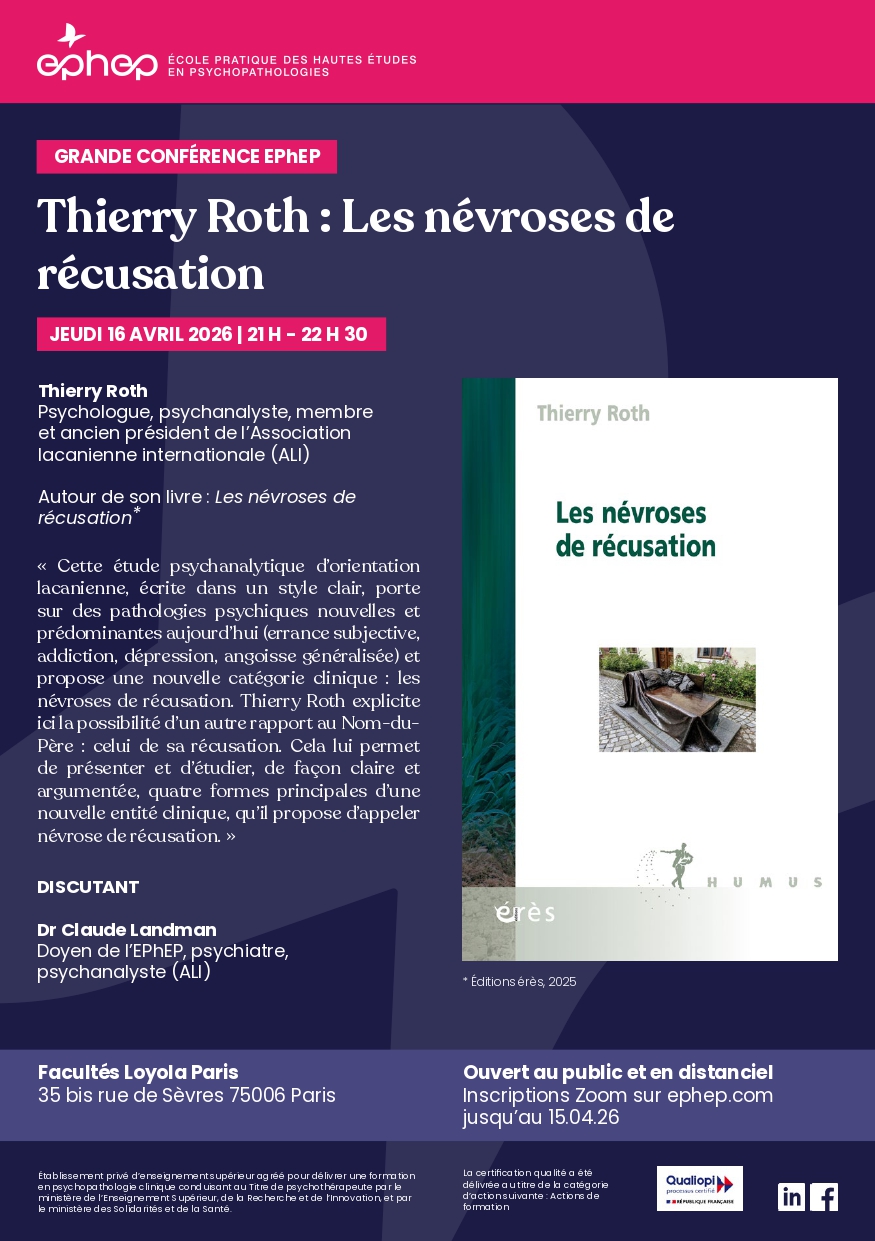 Grande conférence EPhEP – Thierry Roth sur son livre “Les névroses de récusation”