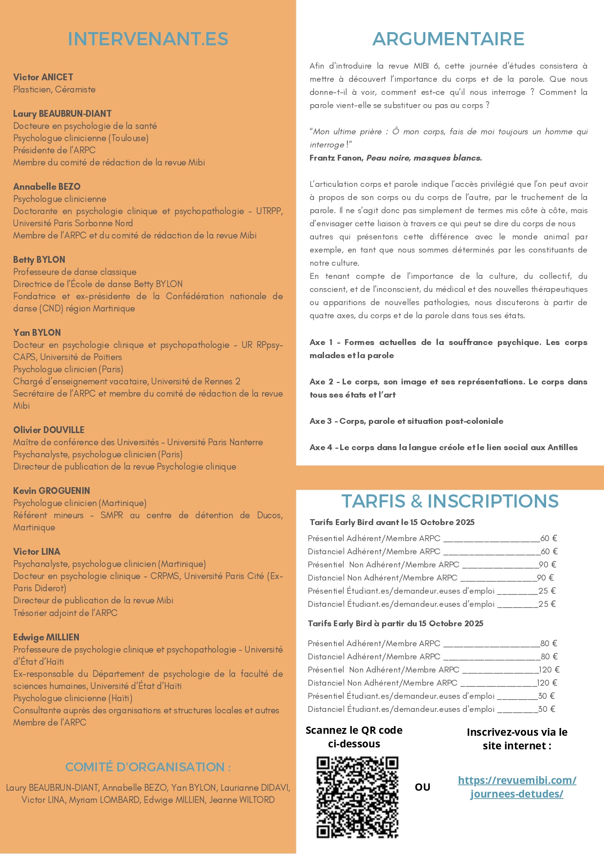Modalité d'inscription : CONTACT : ARPC.ASSO@OUTLOOK.FR