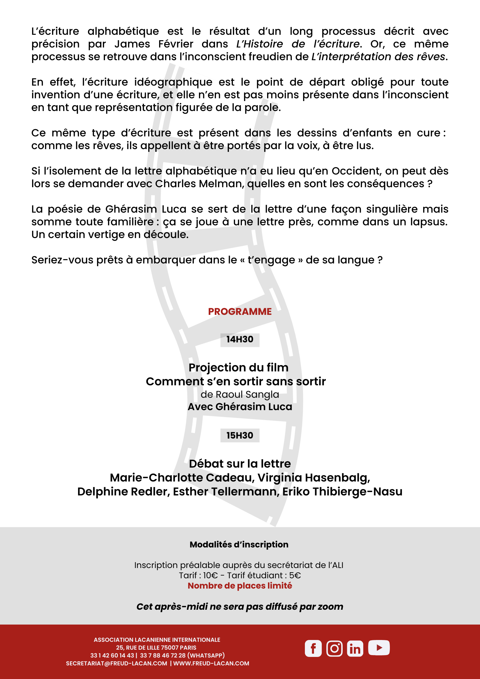 Modalité d'inscription : Tarif : 10€ – Tarif étudiant : 5€ Nombre de places limité Cet après-midi ne sera pas diffusé par zoom